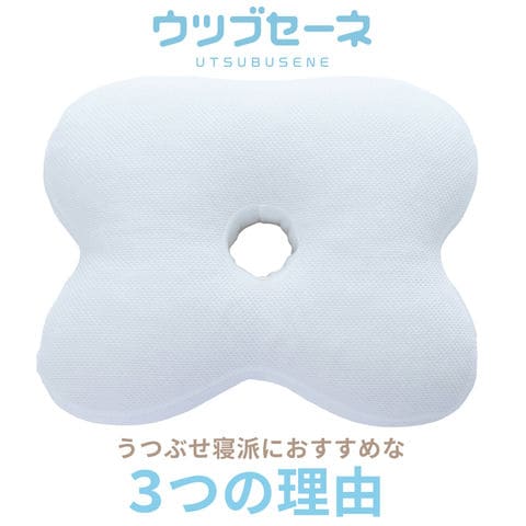 ウツブセーネは、ふっくらと柔らかく、腕を回しやすい形状、完全うつぶせのための穴など、うつぶせ寝のしやすさを第一に考えてつくられています。