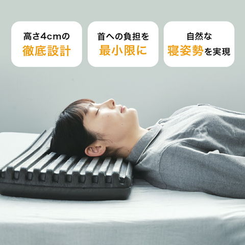 枕の高さが徹底的に低く設計された、低めの枕が好みの人、もしくは普段枕を使わない人向けの枕です。枕の首元部分の高さは4cmに設定。頭を無理して上げることがないので、首への負担も最小限に抑えることができ、首元にお悩みを抱えている方にも、首筋の矯正をすることなく、枕を使っていない感覚で使用することができる枕に仕立てています。