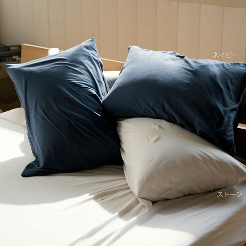 袋状に縫い合わせたシンプルな仕様です。ピローケースの奥までキッチリと中身を入れます。中身の大きさに合わせて余った部分を折り込んでください。