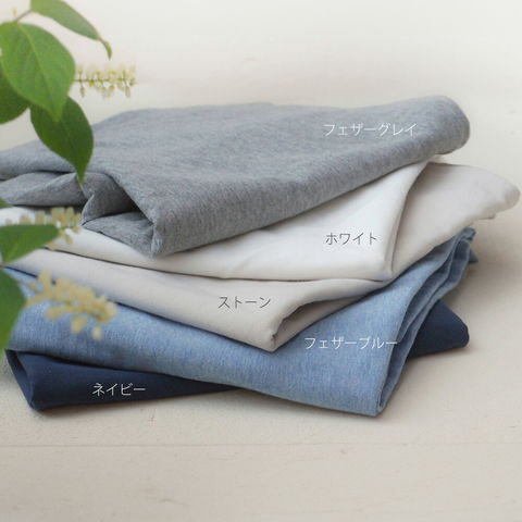 「ホワイト」「ストーン」「ネイビー」「フェザーブルー」「フェザーグレイ」のシンプルで合わせやすい無地カラーのラインナップ。