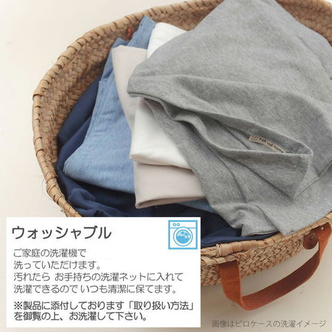 | ・ご自宅でお洗濯が可能です。 ・漂白剤のご使用はお控えください。 ・蛍光剤入りの洗剤のご使用はお控えください。 ・タンブラー乾燥はお使いいただけません。 |