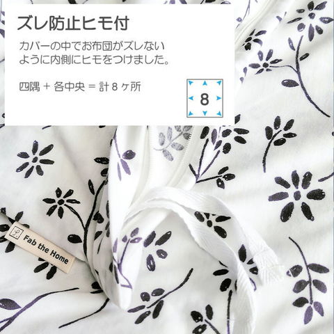 カバーの中でお布団がズレないように内側8ヶ所にヒモ付きです。