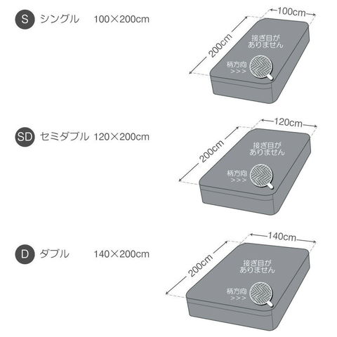 「シングル」「セミダブル」「ダブル」サイズ展開です。いずれのサイズも厚み18~26cmのマットレスに対応します。