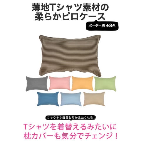 薄地Tシャツ素材の柔らかピロケースは、全8色のカラフルなボーダー柄の枕カバー。綿100%の伸縮性のある薄いニット生地は、柔らかな肌触りでフィット感も抜群です!カジュアルな薄手生地なので、お洗濯も乾燥もラクラク♪とにかく気軽で使い勝手のいい枕カバーです。
