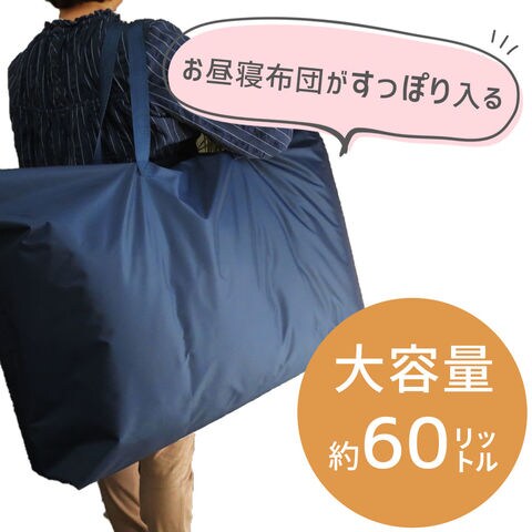 大容量の約60リットル!標準的なお昼寝布団セットならすっぽり入るサイズです。ご旅行や帰省時にもマルチに使用できます。