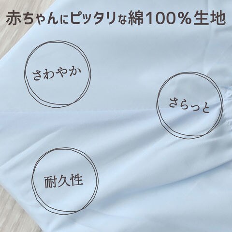 汗っかきの赤ちゃんにピッタリ♪吸水性・耐久性に優れた綿ブロード生地のフィットシーツ♪