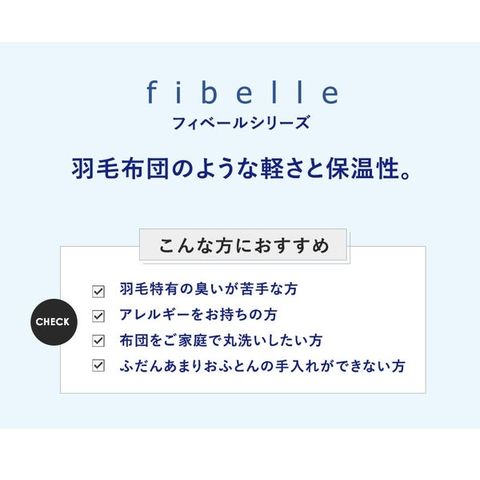 「羽毛布団は使いたいけど、においが気になって・・」「アレルギーがあるので、羽毛布団が使えない」「使っているとボリュームがなくなってきてしまってがっかり」などのお悩みを解決。羽毛のような軽さと保温性を兼ね備え、へたれにくく、いやな臭いもしない。それが、トレビラフィルフィベールです。