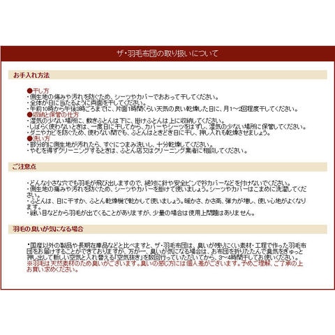 | ザ・羽毛布団 (ニューゴールドラベル) ホワイトダックダウン85% |