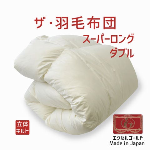 ザ・羽毛布団 エクセルゴールドラベル イングランドダウン90% スーパーロングダブルサイズ(約190×230cm) 詰め物重さ:1.6kg、かさ高:15.5cm 高級 日本製 送料無料 羽毛ふとん 羽毛ぶとん