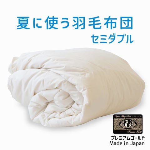 夏に使う羽毛布団 プレミアムゴールドラベル (ポーランド産ホワイトマザーグース95%) 羽毛布団 セミダブルサイズ 約170×210cm 送料無料 日本製 ダウンケット 夏掛け 合掛け 肌掛け 軽量 羽毛ふとん 掛け布団 羽根布団 夏用