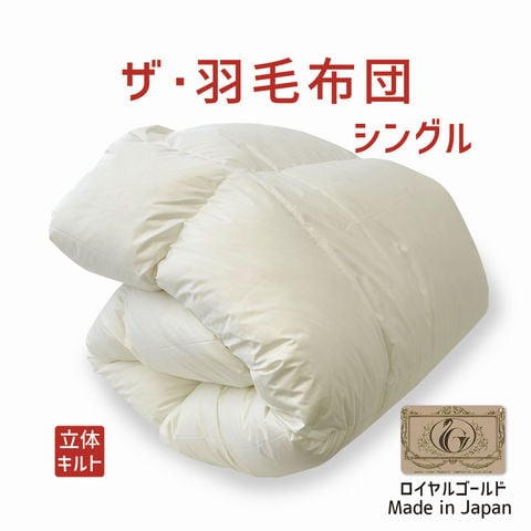 ザ・羽毛布団 ロイヤルゴールドラベル シングルサイズ 150×210cm ポーランド産ホワイトダックダウン93% 詰め物重さ:1.1kg、かさ高:16.5cm 羽毛 軽い 軽量 暖かい あったか