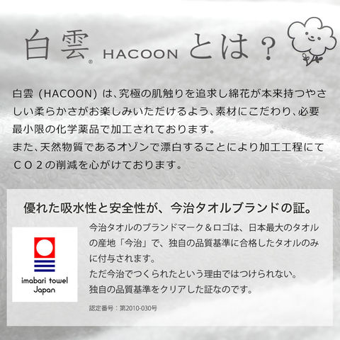 白雲 タオルギフト (バスタオル) 今治タオル使用!贈り物にピッタリの専用ボックス入りバスタオルギフトセット バスタオル ふわふわ ふかふか おしゃれ HACOON プレゼント お返し 日本製 吸水 速乾 無地 60×120 cm お見舞い