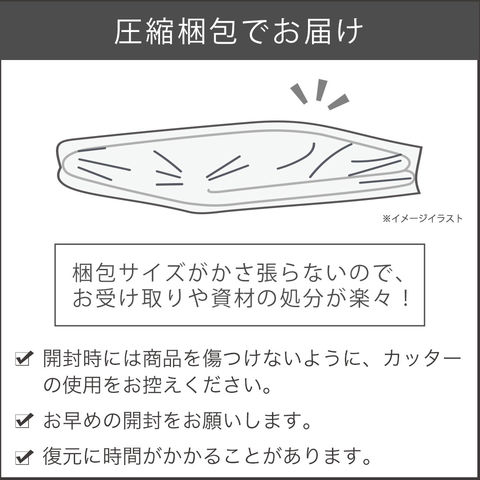 | 簡易圧縮で包装されているため、圧縮袋に入れた状態でのお届けとなります。 |