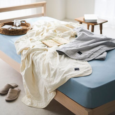 秋から冬には毛布の代わりにお布団に挟んだり、シーツとして敷いたり…一年中使いたい心地よさ。季節の空気に合わせて、あなたの体に寄り添います。