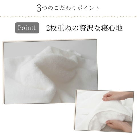 ふんわり柔らかなタオルをぜいたくに2枚重ねにし、ふっくらとしたボリューム感を実現しました。