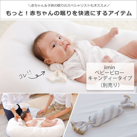 別売りの『iimin ベビーピロー キャンディータイプ』と組み合わせてお使いいただくと、自然な姿勢をサポートしやすくなります。ご一緒にいかがですか?