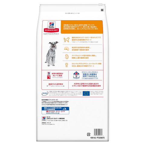 脂肪分約26%オフ・カロリー約14%オフ*で健康的な体重管理をサポート *当社「シニア 小粒高齢犬用」ドライ製品との比較