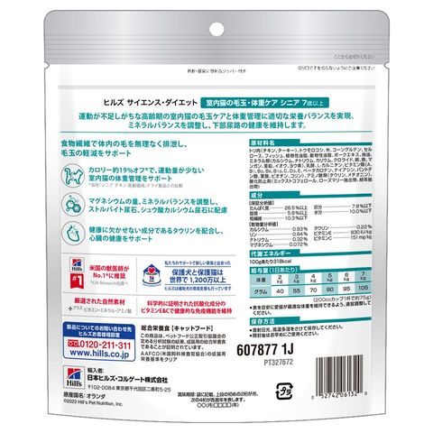 ヒルズ独自の食物繊維ブレンドで高齢期の室内猫の毛玉ケアと体重管理をサポート