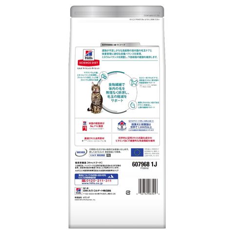 ヒルズ独自の食物繊維ブレンドで高齢期の室内猫の毛玉ケアと体重管理をサポート