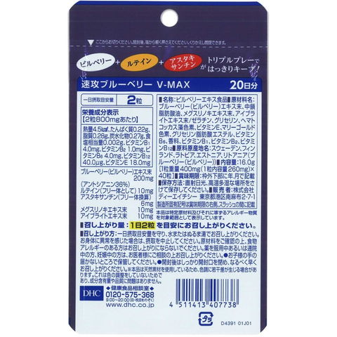 ◆DHC 20日速攻ブルーベリーV-MAX 40粒