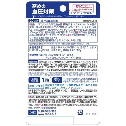 ◆【機能性表示食品】DHC 20日高めの血圧対策 20粒
