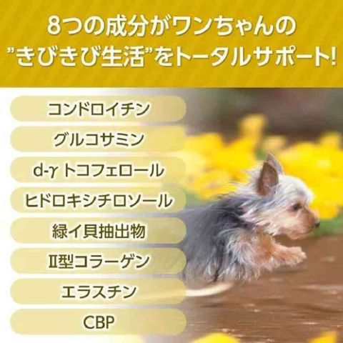 きびきび散歩に配合されていた4成分に加え、緑イ貝抽出物やCBPを配合しました。