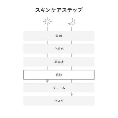 ●さらっとした乳液です。中味が出すぎないようにゆっくり容器を傾けてお使いください。 ●化粧水の後、手のひらに10円硬貨大をとり、顔全体にやさしくなじませます。 ●かさつきや乾燥が気になる部分には重ねづけしてください。 ●とくにデリケートな部分にお使いになるときは、肌を強くこすらないよう、手のひらで肌を軽くおさえるようにしてなじませます。