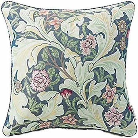 クッションカバー45×45 モリスデザインクッションカバー レスターアカンサスクッションカバー 川島織物セルコンクッションカバー ブルーグリーンクッションカバー 北欧風クッションカバー 英国調インテリアクッション 洗えるクッションカバー 上品デザインクッションカバー 花柄クッションカバー