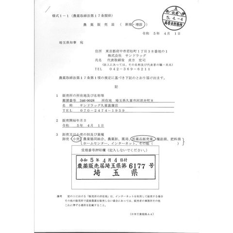 農薬・肥料登録番号に該当します。取扱には注意してください。