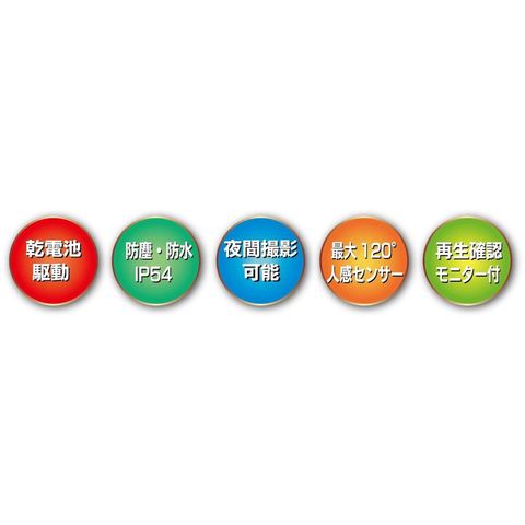 ●すぐに使える監視カメラです。●配線不要で簡単に設置できます。●Full HDを超える800万画素の高画質モデルがこの価格です。●防塵防水仕様なので屋外でも使えます。●防犯、監視、観察など、様々な用途や所で使用可能な監視カメラです。●赤外線温度変化を検出した時だけ撮影できるPIRセンサーを搭載。●センサーとは関係無く、予め設定した間隔で撮影できるライムラプス機能も搭載。●40個の赤外線LEDを搭載。屋内、屋外を問わず、夜間の撮影で効果を発揮します。●幅(mm):83●奥行(mm):62●高さ(mm):136●最大画素数(万):800●色:ブラック●電源:単三アルカリ乾電池8本。または4本。(別売)●解像度:(写真)20MP/16MP/12MP/8MP/5MP/3MP/1MP、(ビデオ)3840×2160P、2688×1520P:20FPS、1920×1080P/1280×720P、1280×720P:60FPS、848×480P/720×480P、640×480P/320×240P●電源(V):単三アルカリ乾電池8本。または4本。(別売) 質量323g