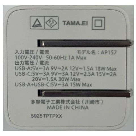 多摩電子工業 PD30WAC充電ケーブル TAP157UCCC10W