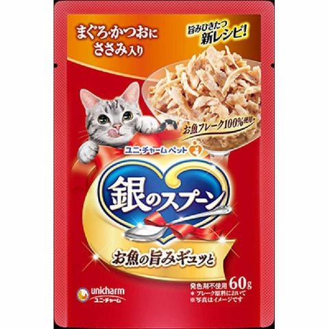 ユニ・チャーム 銀のスプーンパウチ まぐろ・かつおにささみ入り 60g