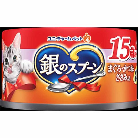 ユニ・チャーム 銀のスプーン缶 15歳頃から まぐろ・かつおにささみ入り 70g