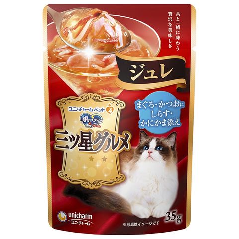 ユニチャーム 三ツ星グルメパウチ ジュレ まぐろ・かつおにしらす・かにかま添え 35g