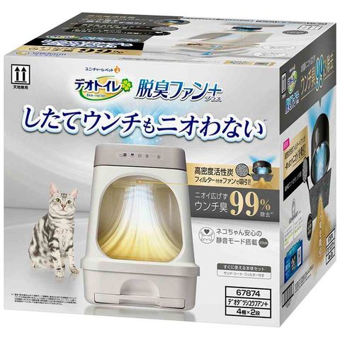 ※1 愛猫1頭(体重8kgまで)標準モード稼働時。普段の生活での消費者テストにて「ウンチの消臭効果があること」と回答した消費者89.5%。ユニ・チャーム調べ。