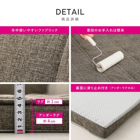 ※アンダーラグは圧縮梱包でお届けします。開封後、製品が元の形に戻るまでの時間は、環境などの条件によって異なります。