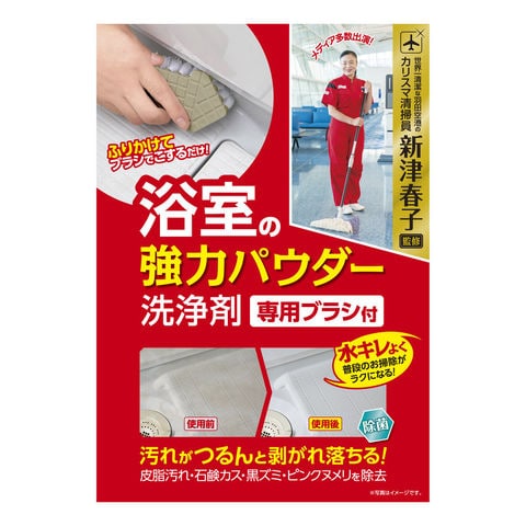 世界一清潔な羽田空港のカリスマ清掃員新津春子監修の洗浄剤世界一清潔な羽田空港のカリスマ清掃員、メディア出演多数の新津春子監修の洗浄剤。普段の洗剤で落ちない頑固な湯アカ・水アカ・黒ずみ・ピンクヌメリをパウダー状の洗剤でカンタンにつるんと剥がれ落とす。パウダーをふりかけるふりふりボトル付。洗浄後、水切れよくなりその後のお掃除がカンタン。また除菌効果があるので、衛生的です。【仕様】[使用量の目安]浴室床一面に約40g