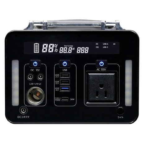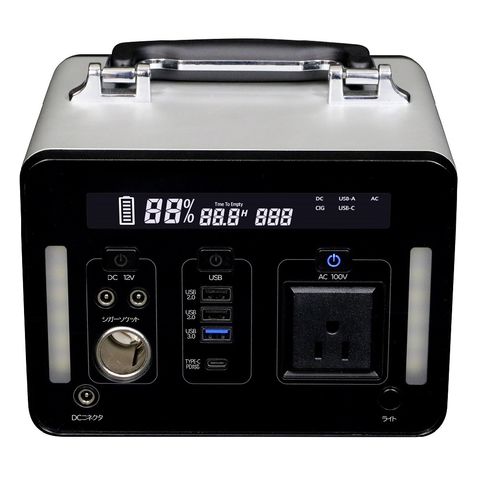 ●サイズ:W200×D176×H143mm●重量:5.4kg●電圧:14.4V●AC出力消費電力:500W●容量:501.12Wh●付属品:電源コード、ACアダプター、車載用充電ケーブル、取扱説明書