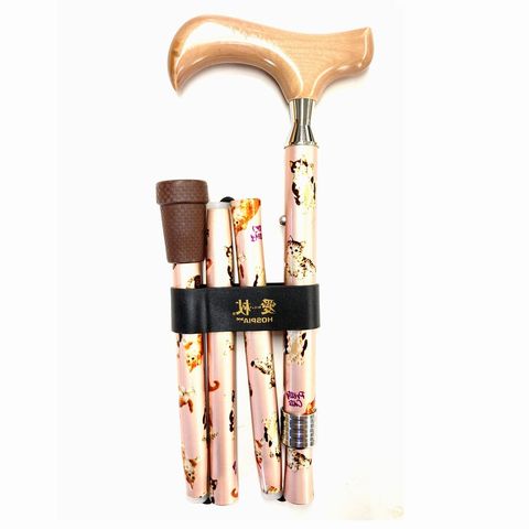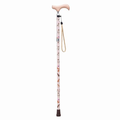商品説明可愛いい猫のプリントを施した折畳ステッキ。ナチュラルな木の風合いのグリップと銀色リングがお洒落。折り畳めば最大幅26センチのコンパクト設計でバックやリュックに収納できます。5段階の長さ調節機能が付いていて身長144センチ~164センチまでの方にご使用頂けます。握った時に指がかかるネック部分を細くしてあるから長時間のご使用でも指の間が痛くなりにくいスリムネック構造を採用。製品安全協会の厳しい品質基準をクリアしたSG認定商品です。グリップ長:12センチ 長さ:75~85センチ シャフト上径:19ミリ シャフト下径16ミリ 先ゴム底径:30ミリ 約280グラム。