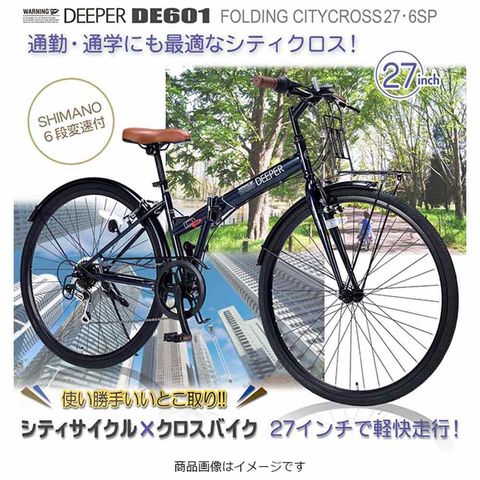 折りたたみシティクロス 6段変速 フロントキャリア DE601 メーカー直送▼返品・キャンセル不可【他商品との同時購入不可】