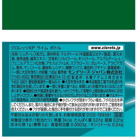 ◆モンテリーズ クロレッツXP ライムボトル 130g