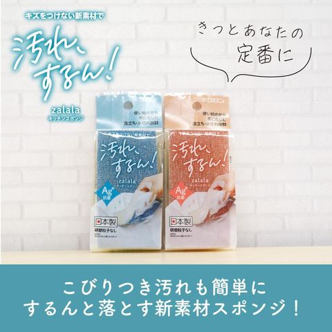 こびり付き汚れもするんと落とす新素材のスポンジです。