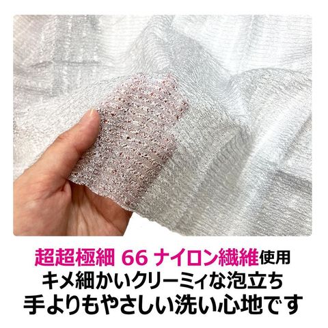 手洗いより泡立ち手洗いより背中も洗いやすく、手洗いよりもやさしく洗える今までにないボディタオル、110cmロングサイズ。