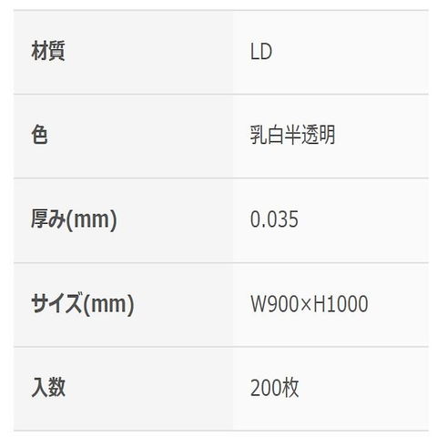 200枚入り、サイズ:0.035mm×900mm×1000mm