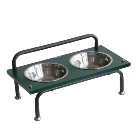 商品説明グリーンとブラックのスチールがお洒落なフードボウル。 ●ブラックスチールの取っ手がアクセント。 ●高さ13cmと高さがあるので、首の負担軽減になります。 ●お皿はステンレスなので衛生的。※中型~大型犬用。