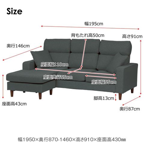 カウチソファ ルピア4 ダークグレー 393464 メーカー直送 ▼返品・キャンセル不可【他商品との同時購入不可】