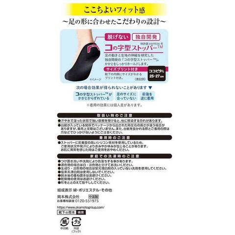 足の動きと生地の伸縮を研究した独自開発・特許技術の「コの字型ストッパー?」がかかとをしっかりホールドし、「一日中、脱げない」を実現。階段を上っている時も、走っている時も、靴を脱ぐ時も、脱げません。