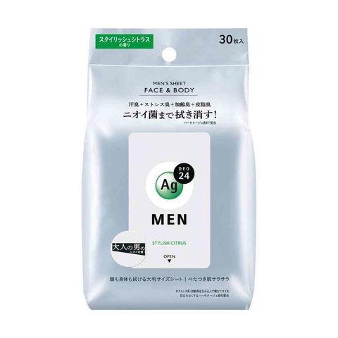 資生堂、SHISEIDO、フィティット、AG、Ag+、AG24、デオ24、メンズシート、フェイス&ボディ、フェイスアンドボディ、シトラス、銀イオン、消臭、デオドラント、汗、ニオイ、臭い、加齢臭、男、男性、男性用、フェイスシート、顔用、ボディシート、体用、汗拭きシート