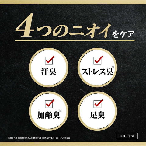 加齢臭・ストレス臭を包み込んで目立たなくするハーモナージュ香料配合。