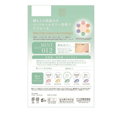 ●肌色、シミやくすみ、赤み、色ムラ、肌トーン、血色など発色に関する悩みを対角の色味の効果で補正するストッキング。